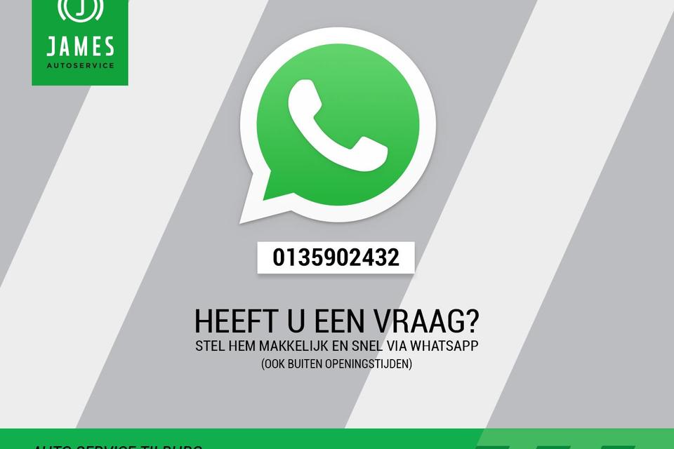 JAMES Autoservice Tilburg is al meer dan 35 jaar een begrip in TILBURG en omgeving. Kijk voor meer informatie over ons bedrijf, ons aanbod auto's en meer foto’s op onze website WWW.JAMESTILBURG.NL. Informeer naar onze aflevering- en garantiepakketten vanaf 495 euro. Alle moeite is genomen om de informatie in deze advertentie zo accuraat en actueel mogelijk weer te geven. Er kunnen echter geen rechten worden ontleend aan fouten in opties & accessoire lijst.